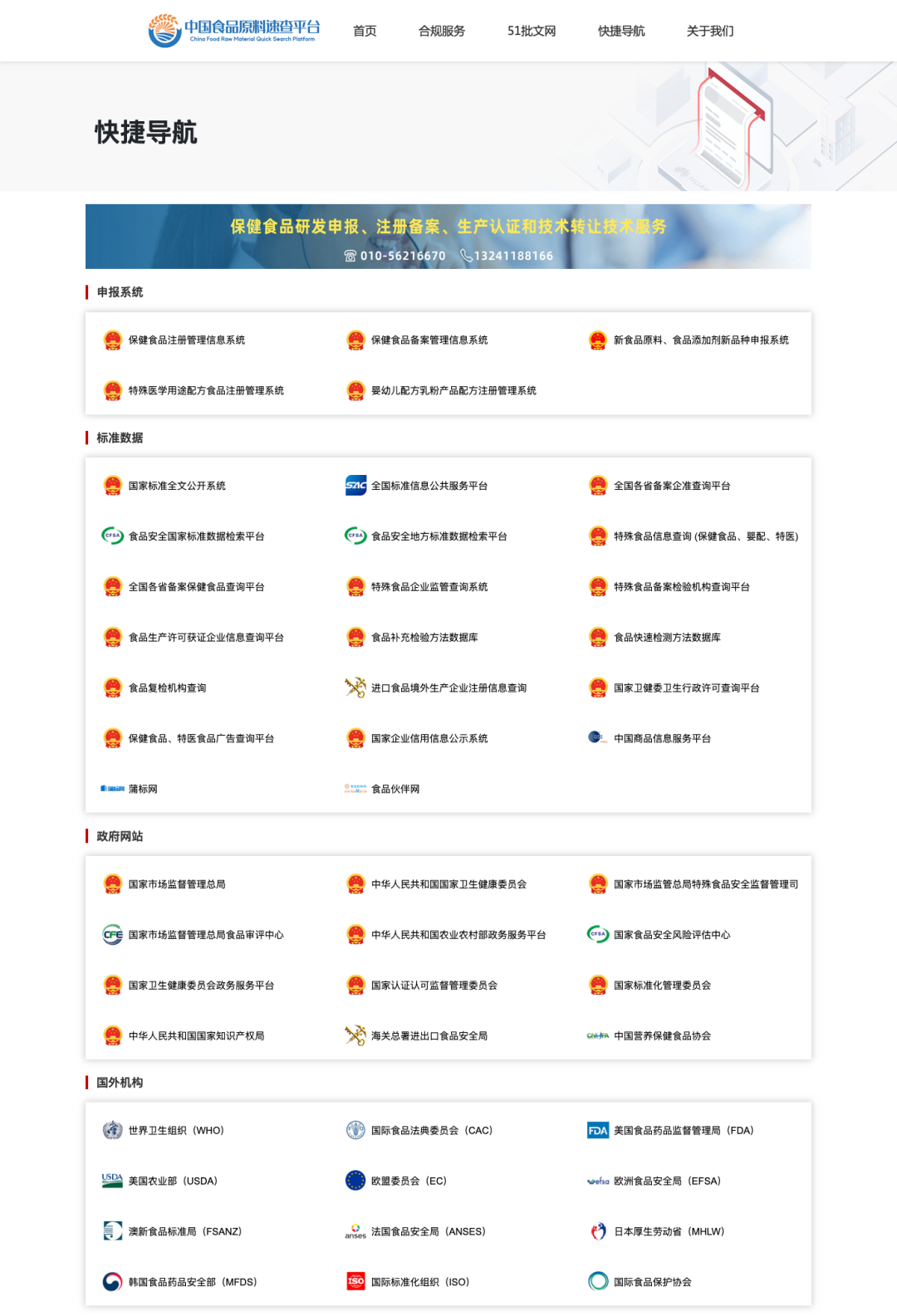 快捷導(dǎo)航一鍵速達(dá):中國(guó)食品原料速查平臺(tái)收錄了保健食品、食品原料國(guó)內(nèi)外常用的網(wǎng)站清單,涵蓋申報(bào)系統(tǒng)、標(biāo)準(zhǔn)數(shù)據(jù)、政府網(wǎng)站、國(guó)外機(jī)構(gòu),可為業(yè)內(nèi)從業(yè)人員和企業(yè)提供便捷的網(wǎng)址導(dǎo)航服務(wù)。